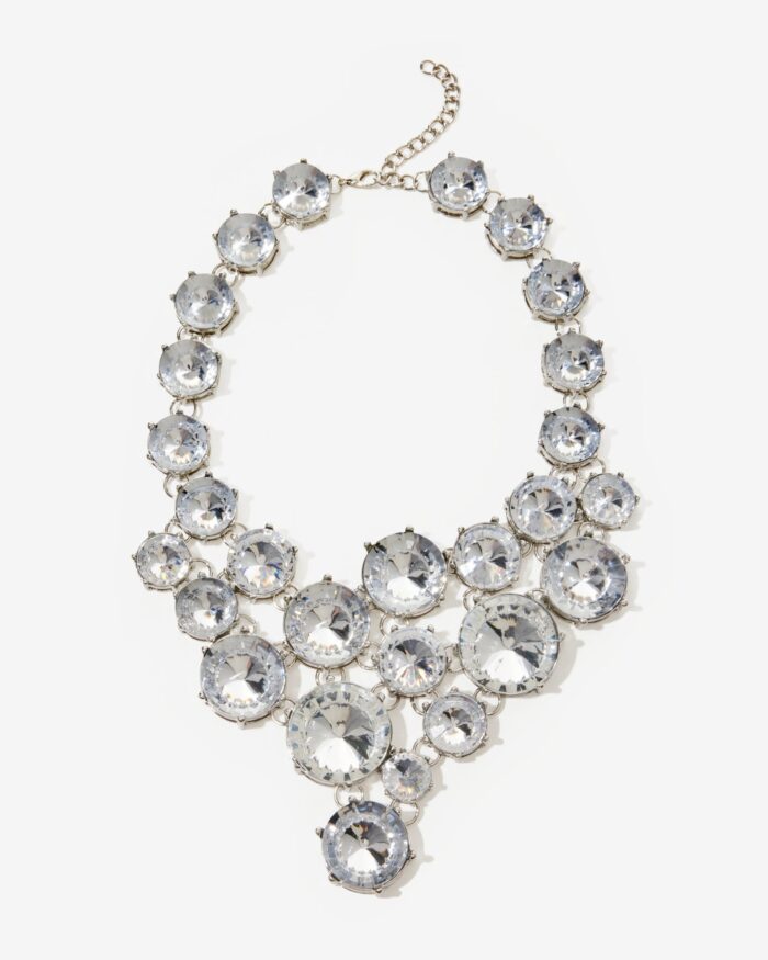 Take your everyday or occasion looks to the next level with our Gem Statement Necklace. featuring a dazzling array of clear crystal gems with silver-tone accents. Pair with the coordinating drop earring for even more shine.